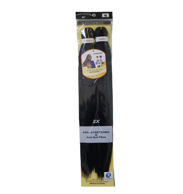 Enhance your hairstyle with the Kuknus Collection 2X Braid 26” Hair Extensions. Made with high-quality synthetic fibers, these extensions are perfect for adding volume and length. The 2X braid design gives a unique and stylish look to your hair.