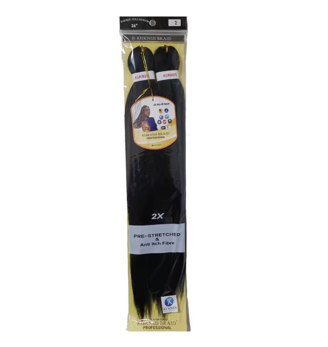 Enhance your hairstyle with the Kuknus Collection 2X Braid 26” Hair Extensions. Made with high-quality synthetic fibers, these extensions are perfect for adding volume and length. The 2X braid design gives a unique and stylish look to your hair.